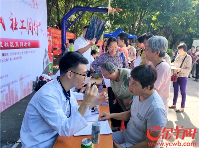 10月27日上午,由羊城晚报集团金羊网、广州市社会工作协会联合主办的“活力羊城 社工同行”健康服务进社区系列活动走进白云区金沙洲新社区文体广场。活动特邀中山大学孙逸仙纪念医院心血管内科、骨外科、耳鼻喉科等科室多名专家开展主题为“霜降养生 保健要身心兼顾”社区义诊活动,为街坊们科普秋冬季常见疾病的防治知识,逾百名社区居民接受了义诊服务。