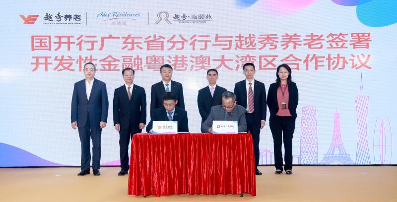 随后,越秀养老与国家开发银行签署《开发性金融粤港澳大湾区合作协议》。根据协议,国开行将凭借其全面优势,与越秀养老共同探索符合现阶段国情的养老金融服务,并计划2019至2023年期间,为越秀养老提供30亿元人民币的金融产品,助力越秀养老推动健康养老事业发展。