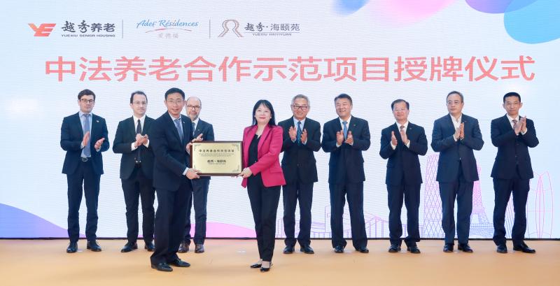 越秀·海颐苑作为越秀养老与拥有60多年养老与护理经验的法国爱徳福护理机构的合作项目,被授予“中法养老合作示范项目”牌匾。出席开业仪式领导共同为越秀·海颐苑揭牌。