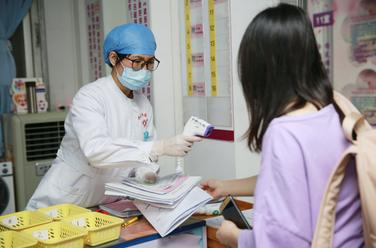 在医院大门口测温之后,在产科分诊台二次测温