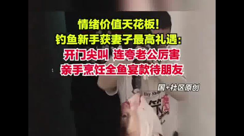 情绪价值拉满,钓鱼佬的幸福时刻!男子钓了一条大鱼 妻子开门尖叫做全鱼宴待客