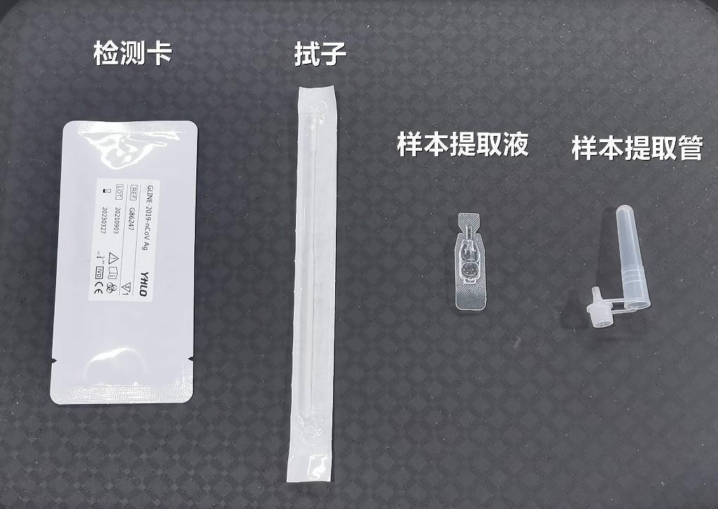 2、开箱:抗原自测试剂盒中一般包含说明书、检测卡、拭子、样本提取液、样本提取管。使用前要阅读说明书,不同品牌操作可能有细微区别。