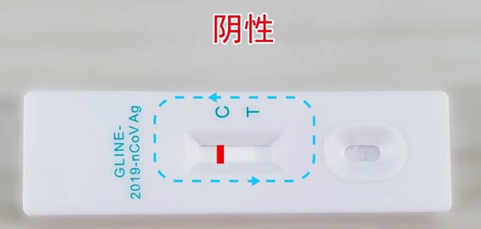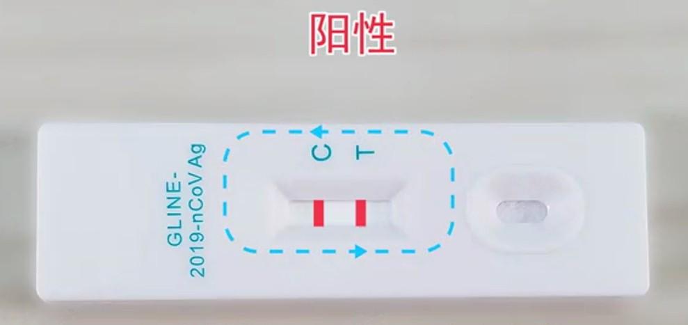 C和T处均显示红色条带(即“两道杠”)则为阳性。