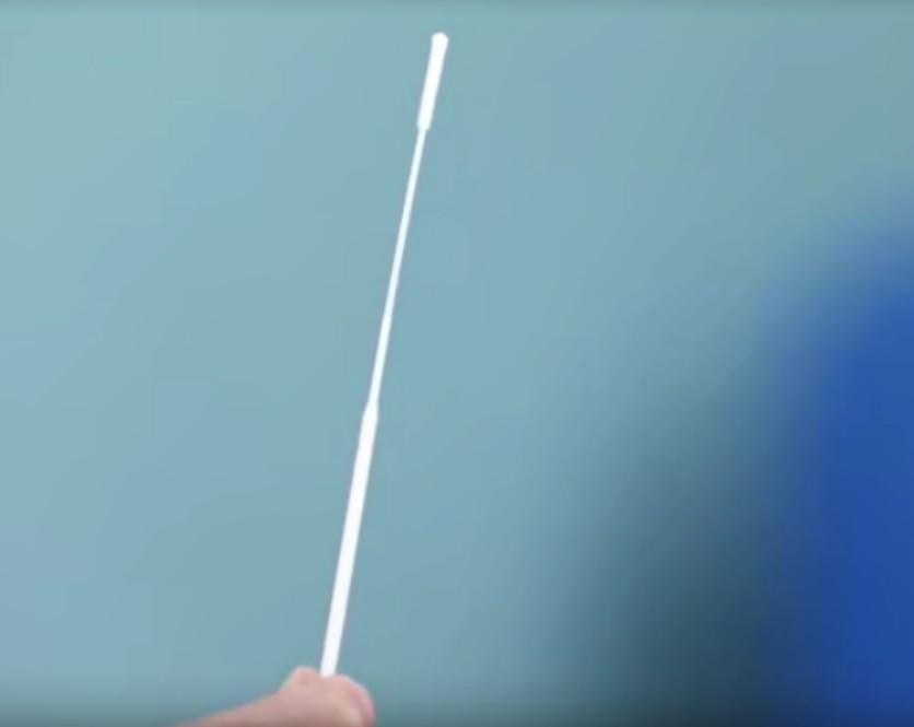 7、头部向后抬高,将拭子沿着鼻内壁慢慢推进1-1.5厘米,一直推到看不见拭子头为止,转动4圈,停留15秒,主要是为了在采样时增加接触面和采样的量。然后将同一拭子在另一鼻孔采样,也是转动4圈,停留15秒。