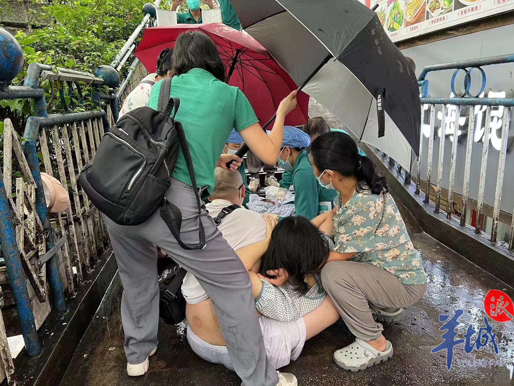 胎儿的头都出来了!今早8点30分左右,天还下着雨,一产妇走在天桥上,突感肚子不适,当街生起了孩子.......路过的市民纷纷来帮忙,正要打120急救时,一转头发现天桥对面就是广州中医药大学第一附属医院!随后该院急诊科三名护士迅速赶到现场,帮助孩子顺利出生。目前,母子平安!