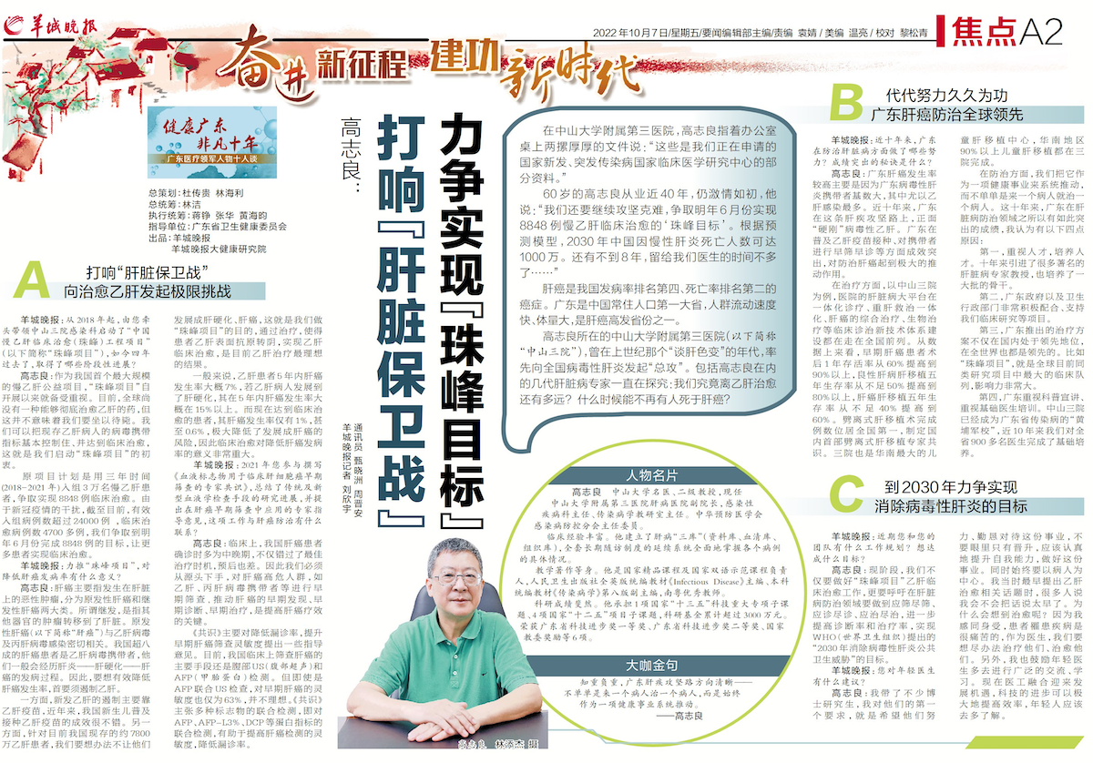 羊城晚报:近十年来,广东在防治肝脏病方面做了哪些努力?成绩突出的秘诀是什么?