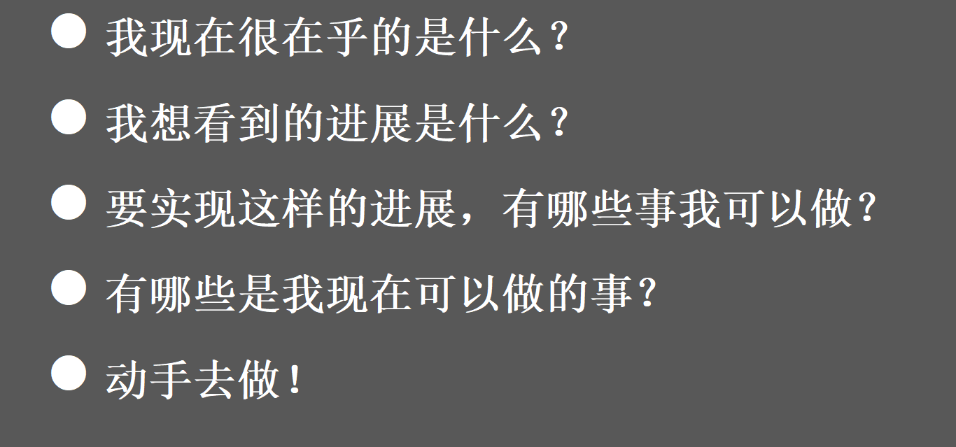放松之后,让大家进行自我提问,这是通过认知行为疗法(CBT)达到渐进式性行为放松,以便让自己可以“找点事做”。这样一来,便把自己从焦虑不安中带离,从而逐渐改变不合理认知。