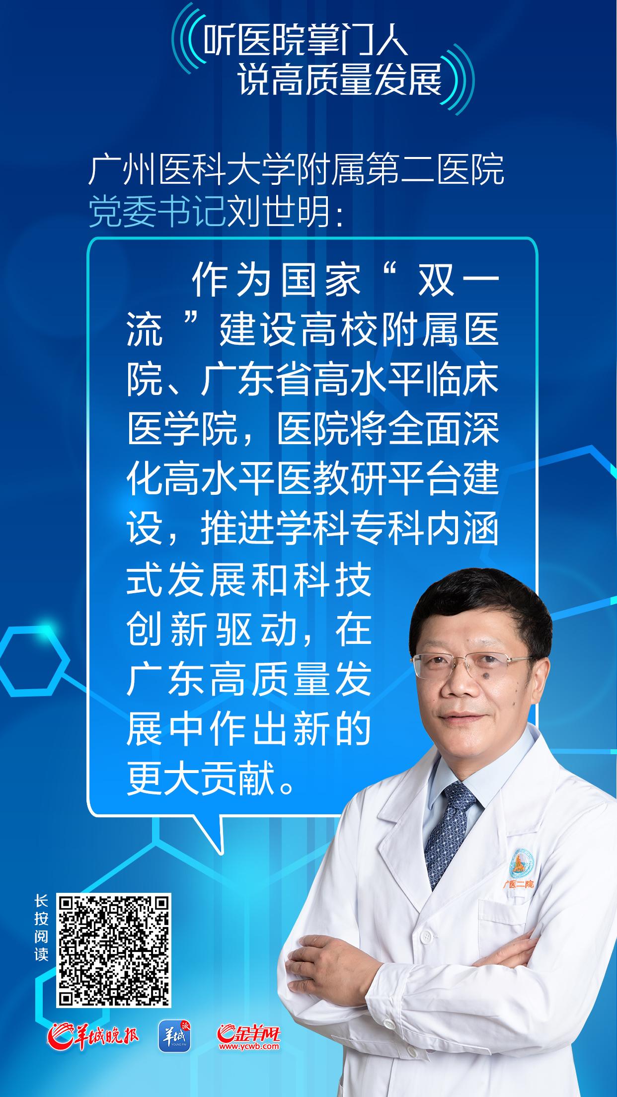 “广东‘新春第一会’吹响扎实推进高质量发展的冲锋号,为广医二院创建国内知名、省内一流,专科特色鲜明的高水平医科大学附属医院提出了新的要求、注入强劲动力。”广州医科大学附属第二医院党委书记刘世明说。