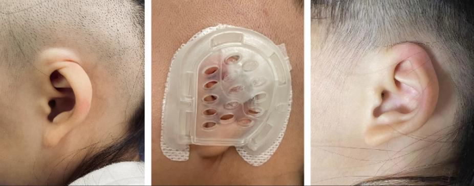 吴旋介绍,先天性耳廓形态畸形发生率高,文献报道,新生儿发生率为50%以上,小部分耳廓畸形能够自愈,但仍有相当一部分患儿无法自愈,会遗留耳廓形态畸形,容易造成患儿心理问题,如出现自卑、抑郁等负面情绪,影响患儿身心健康。因此,宜尽早干预。