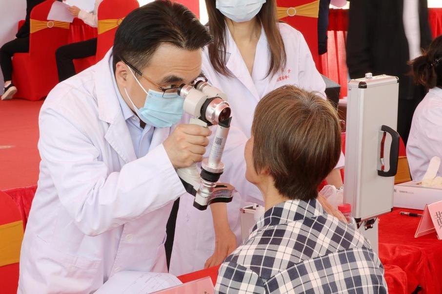 义诊团队将各种检查眼健康的仪器都带了过来,医生给做完检查后的李阿姨免费送了两副眼镜。“她是先天性远视,小时候没有条件进行检查及矫正,40岁后随着调节下降,视力逐步降低。现在可以用这两副眼镜帮助矫正视力,一副用来看远,一副看近,基本就能满足她的日常需求了。”