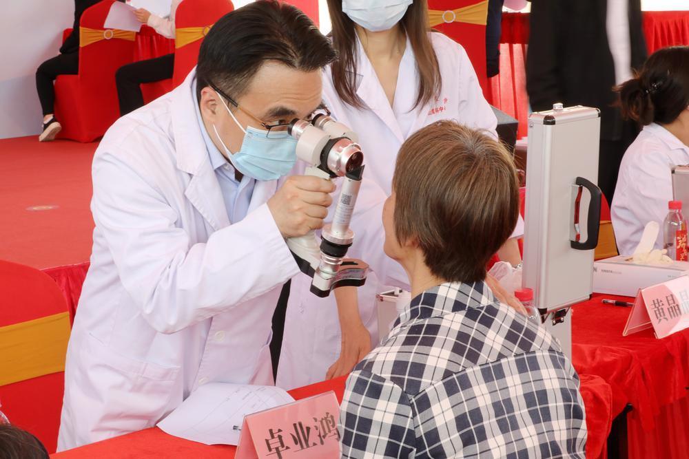 随着全国各地平稳进入“乙类乙管”常态化防控阶段,时隔将近一年,这项令梅州全域老百姓翘首以盼的眼健康公益活动终于迎来了真正落实阶段。3月3日,羊城晚报记者跟随中山大学中山眼科中心(以下简称“中山眼科中心”)医生义诊团队来到了革命老区广东省梅州市梅县雁洋镇,中山大学“嘉元科技光明行动”项目的首站义诊活动将在这里启程,中山眼科中心副主任、知名青光眼科教授卓业鸿带领义诊团队为当地群众开展免费的眼健康义诊筛查服务。