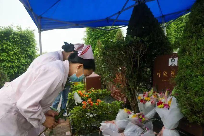 3月25日一大早,广州中医药大学副校长、广东省中医院院长张忠德,医院党委书记史俏蓉等院领导、医院老领导、医务人员代表如约来到银河公墓,看望最亲爱的战友、“抗非”烈士叶欣护士长。大雨滂沱,如同多年未曾磨灭的汹涌思念,人们汇聚在叶欣的墓碑前,献上一束束寄托哀思的鲜花。