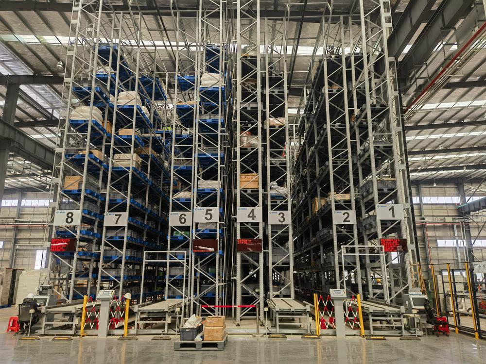 仓库应该是什么样子?整齐的分隔、杂乱的堆积?在位于肇庆市的鹏凯环境智能制造基地中,记者看到了一套立体式仓库。各种货物、原材料被有序堆叠,一层一层摆上了巨大的货架。