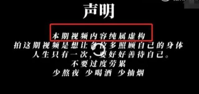 整个视频播放到7:51-7:52最后两秒钟时 ,视频画面里出现了下方的字慕:“祝大家身体健康”“本期视频内容纯属虚构”。