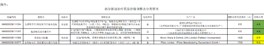 除去价格调整外,更重要的是,分类情况将直接决定新冠治疗药物在医保临时支付到期后,是否继续享受医保支付待遇。