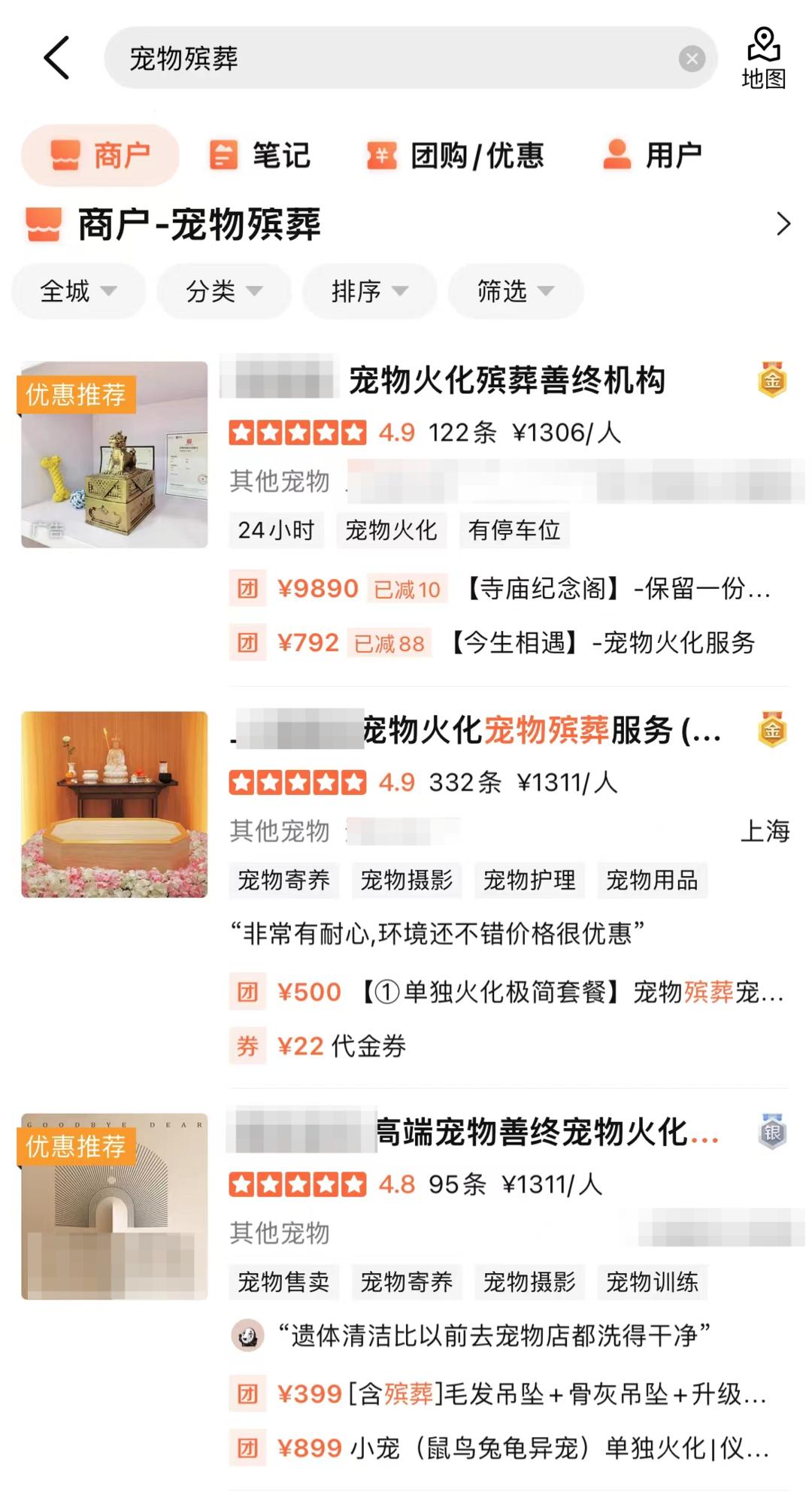 3月27日,记者以“宠物殡葬”为关键词在大众点评搜索发现,在深圳,提供此类服务的机构有30余家;在成都,有50余家;在北京、上海和杭州,均已超过上百家。除了专业的宠物殡葬机构,也有不少宠物医院和宠物店标明提供殡葬服务。