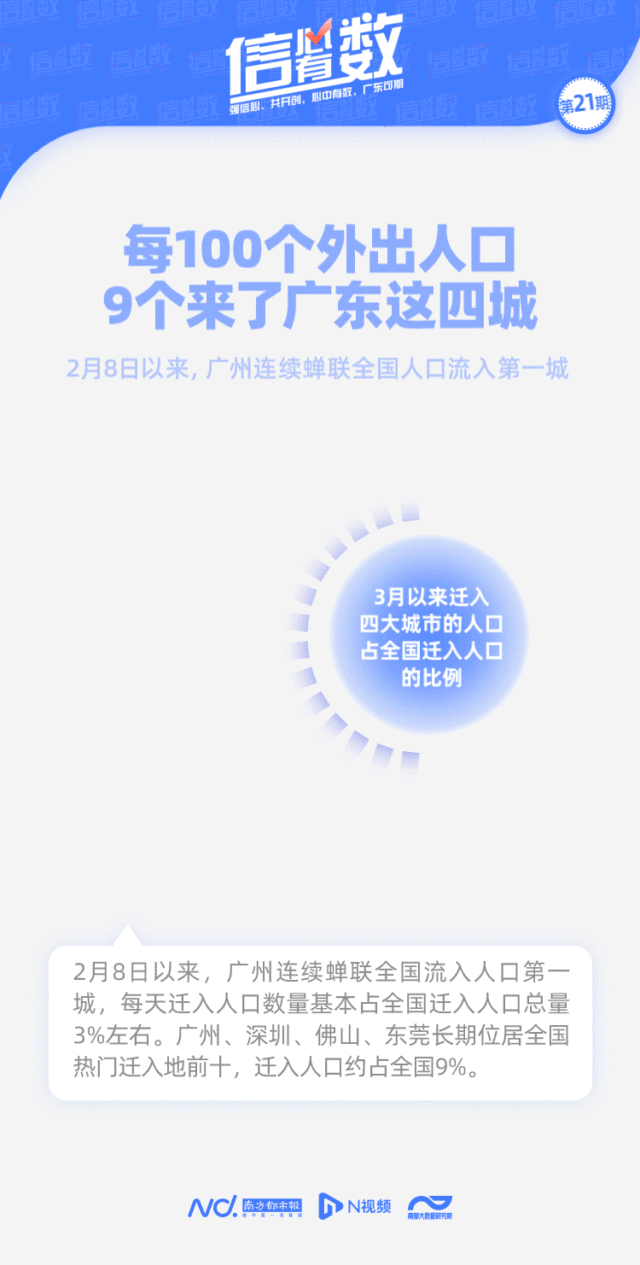 广州、深圳、佛山、东莞长期位居全国热门迁入地前十。