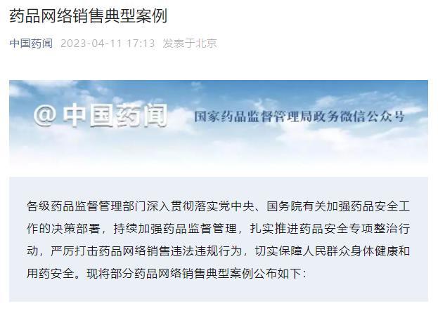 国家药监局公布药品网络销售典型案例,涉美团、京东等