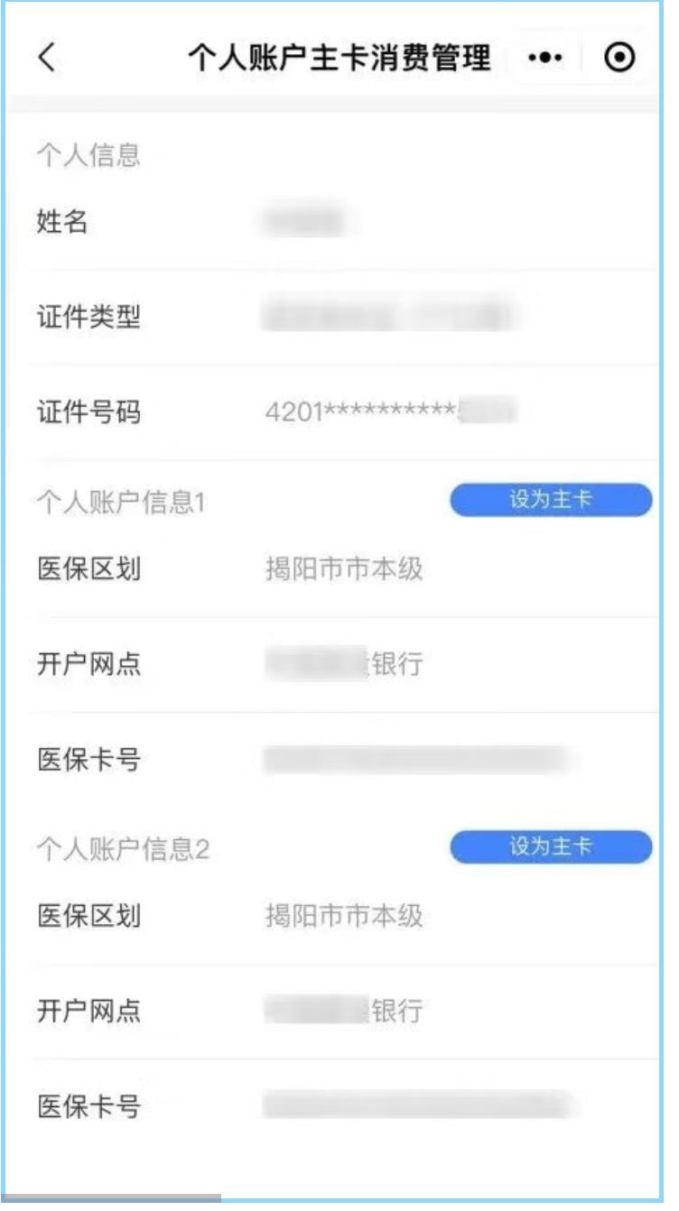 ②设置主卡完成后,医保个账每月注资账户不会改变,仅改变消费时绑定的医保账户。