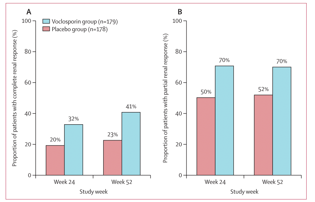 Voclosporin(Aurinia制药公司)是一种新型钙调磷酸酶抑制剂,可以抑制T细胞活化,还能稳定滤过屏障足细胞的功能。和既往的钙调磷酸酶抑制剂相比,具有与钙调磷酸酶的结合力增加,所需药物剂量减少;无需药物浓度监测;对血糖和血脂的影响小等优点。