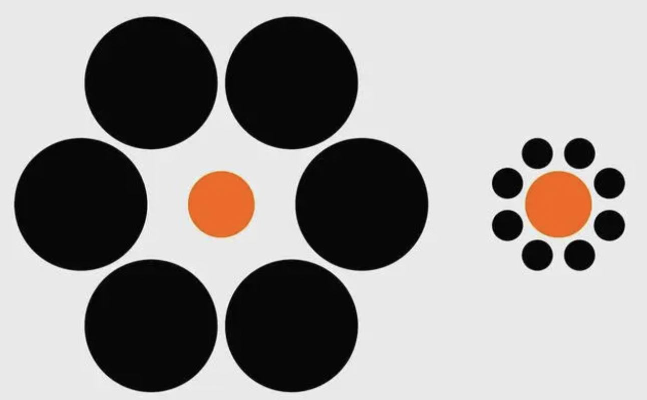 实际上,耳廓美学理论来源于艾宾浩斯错觉,即一种对实际大小知觉上的错视。在最著名的错觉图中,两个完全相同大小的圆放置在一张图上,其中一个围绕较大的圆,另一个围绕较小的圆;围绕大圆的圆看起来比围绕小圆的圆还要小。
