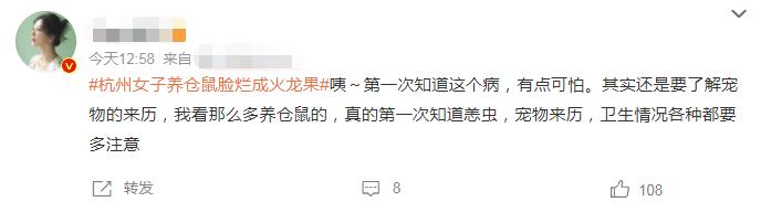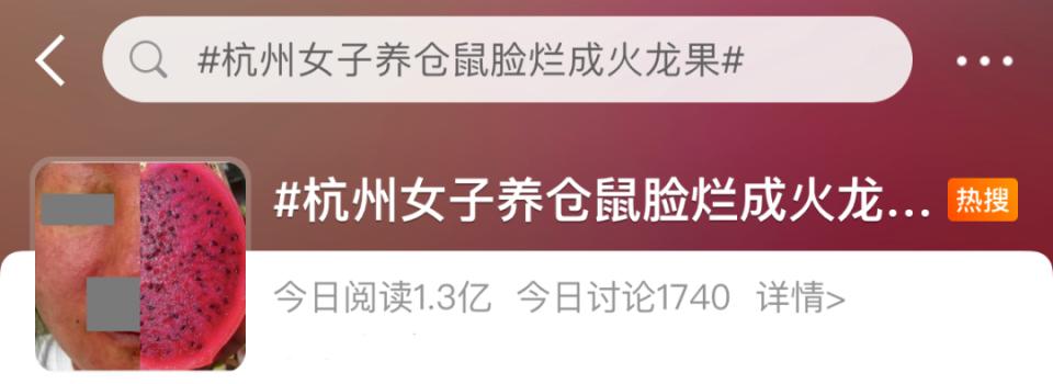 昨日,话题#杭州女子养仓鼠脸烂成火龙果#冲上热搜,引发热议。