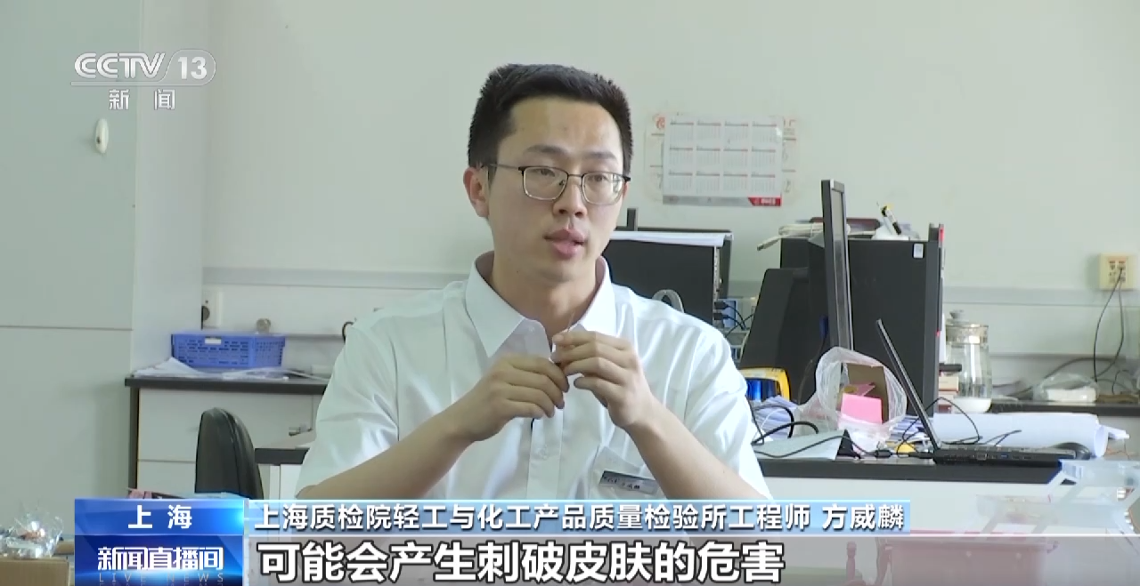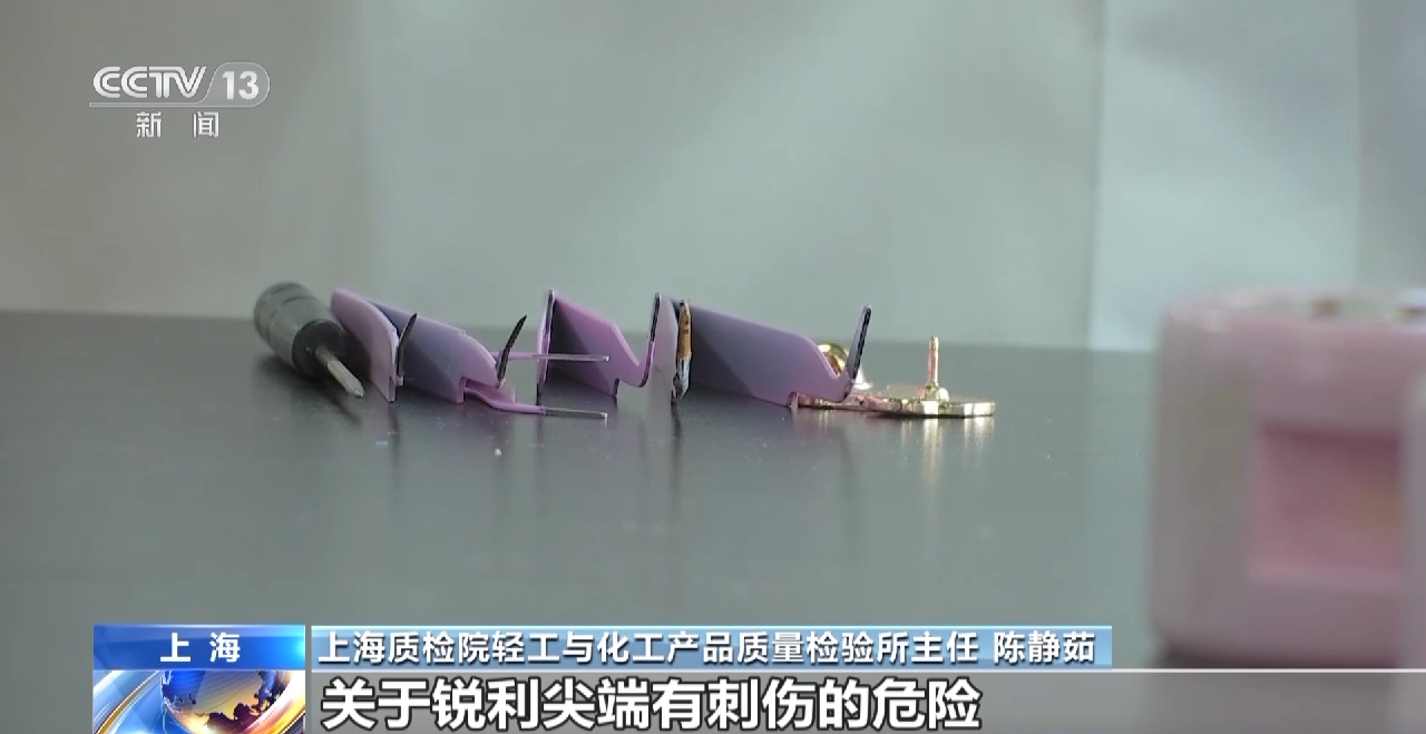 上海质检院轻工与化工产品质量检验所主任 陈静茹:我们这次风险监测中发现六批次的产品有功能性的锐利尖端,但它没有设相关的警示语。警示语缺失,无法提示消费者关于锐利尖端有刺伤的危险。