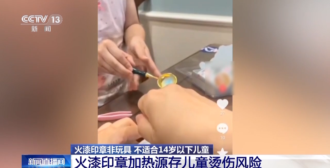 上海市市场监管局日前通报:标称“玩具”字样的火漆印章产品存有严重风险,不适合给14岁以下儿童使用。