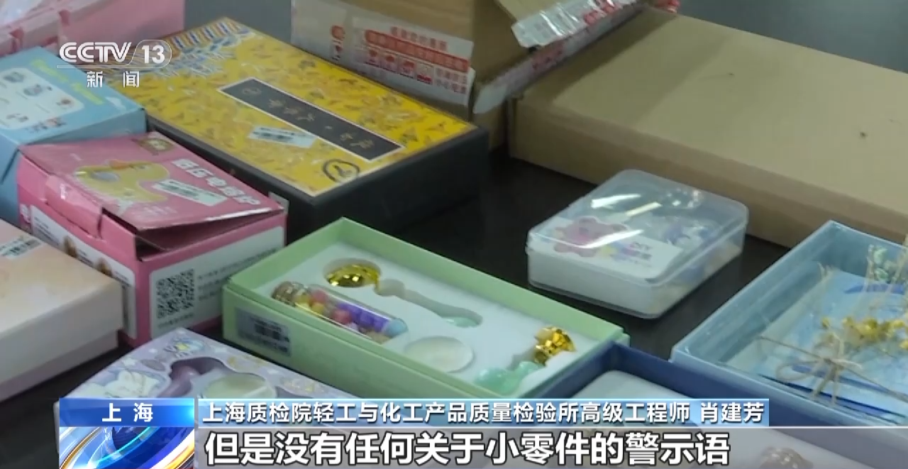 上海质检院轻工与化工产品质量检验所高级工程师 肖建芳:这个包装上的样品信息是3岁以上使用的,但是没有任何关于小零件的警示语。3到6岁的儿童,如果玩这些小部件,一旦被误吞就有可能产生窒息的危险。说明这个样品是不符合国家安全标准要求的。