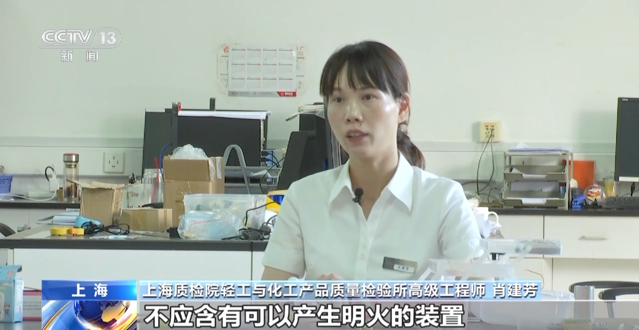 上海质检院轻工与化工产品质量检验所高级工程师 肖建芳:国家标准《儿童用品通用安全技术要求征求意见稿》中明确规定了,产品设计意图中,不应含有可以产生明火的装置,也就是说所有的玩具产品是不应含有明火的。