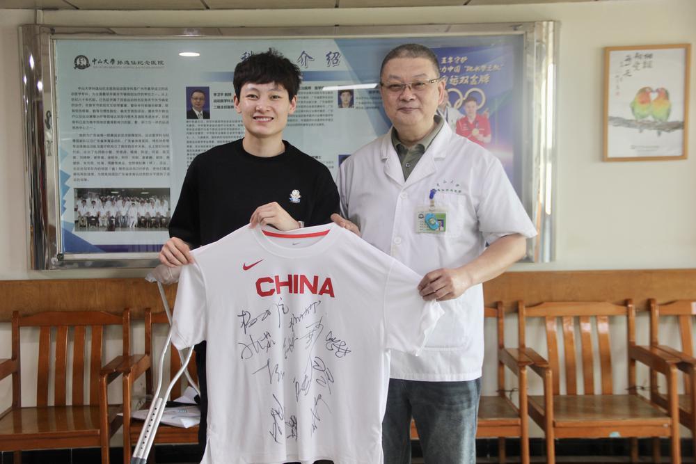 7月4日清晨5时,中国女篮队长杨力维从悉尼飞抵广州,为她们的主诊医生——中山大学孙逸仙纪念医院运动医学科主任李卫平教授送上中国国家女篮教练及全体队员亲笔签名的国家队签名服,向这位长期护航女篮的健康守护者表达感激之情。