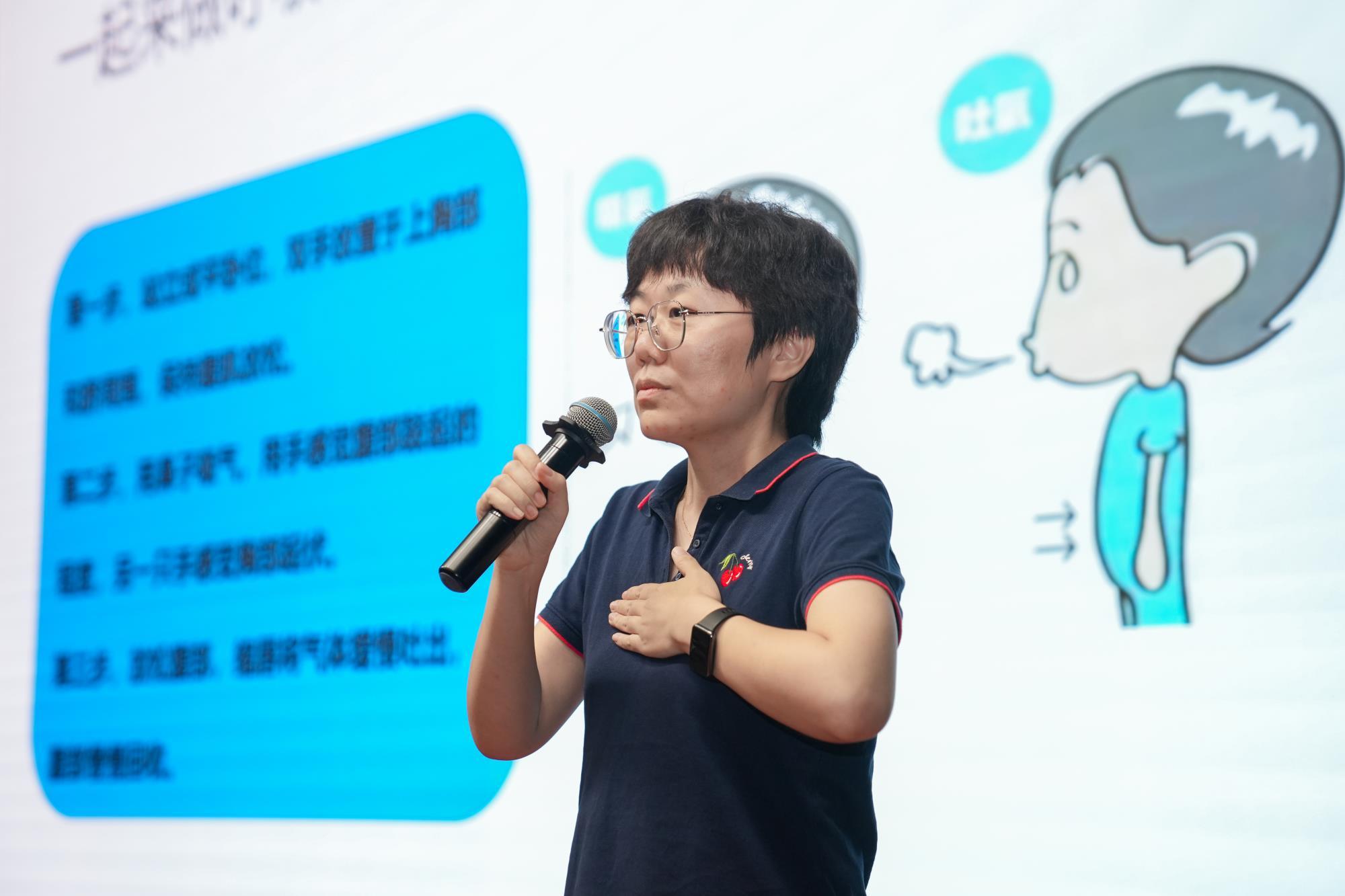 日前,在“生活中的中医智慧”健康促进行动启动仪式上,广东省中医院大学城医院综合三科(老年呼吸病专科)副主任医师张溪现场讲解要点,带领现场观众一起练习呼吸操。