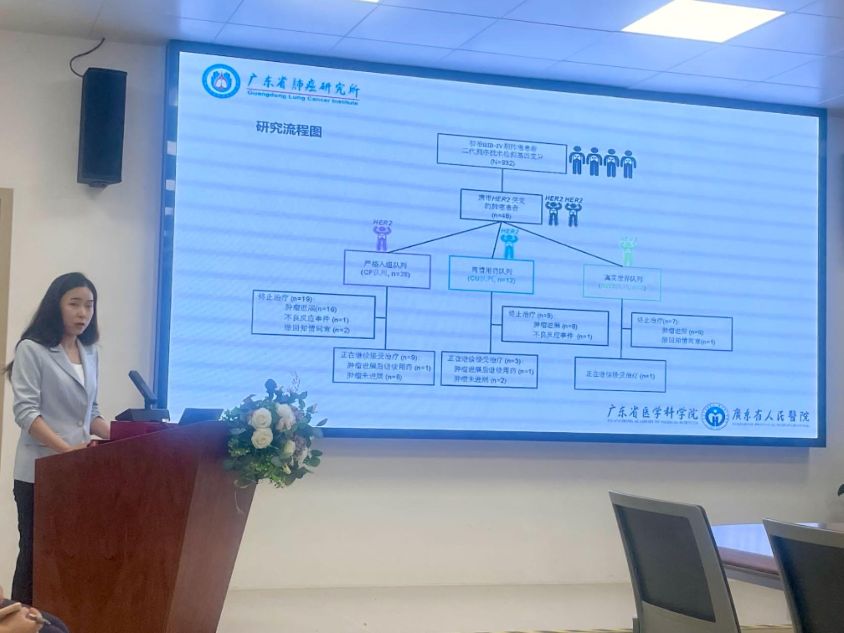 罕见基因突变一直是晚期肺癌患者的一大难题,其中如HER2突变等靶点可以选择的治疗方案有限,并且疗效不理想。2017年,广东省肺癌研究所设计了伞式研究CTONG1702和真实世界研究CTONG1705,在伞式研究中同步高效地开展了设计了10个罕见靶点、9个靶向药和11个子研究方案。周清介绍,“HER2突变在肺癌中的发生率为2%-4%,这个人群在晚期肺癌患者中占比很小。作为研究者常常面临的困惑是,当我们通过基因检测找到了这个人群,却因为某些身体条件不达标而无法临床入组,等于说对这位患者而言,找到了靶点,也有相应的靶向药,但却没法通过入组临床试验而使用。于是我们提出了创新的临床试验模式,增设了一个基于‘同情用药’的‘宽松入排队列’,让这些患者在医生的严格随访下,有机会接受到这些针对性的药物。”同情用药是指对于患有严重或危及生命疾病的患者,在不能通过现有药品或入选临床试验来得到有效治疗时,可以申请在临床试验之外使用未经上市许可的试验用药物。