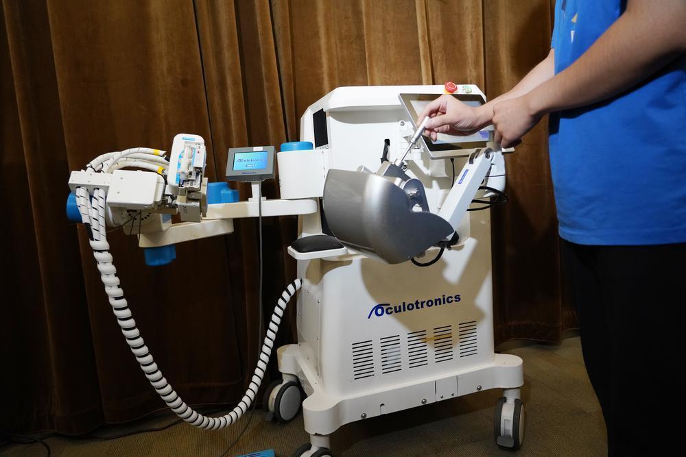 亮点二,即使是年轻医生,也可以借助该机器人完成手术操作。林浩添介绍:“一名眼科医生的成长周期是比较漫长的,想要做手术的手变得越来越稳,对精准度的操作越来越熟练,这都需要时间历练,最少10年。而年轻医生可通过遥控杆控制手术机器人的机械臂实现精细、稳定操作,达到高年资医生的手术水准。”