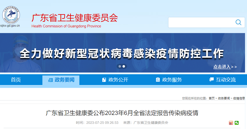 7月25日,广东省卫生健康委发布《2023年6月全省法定报告传染病疫情》。