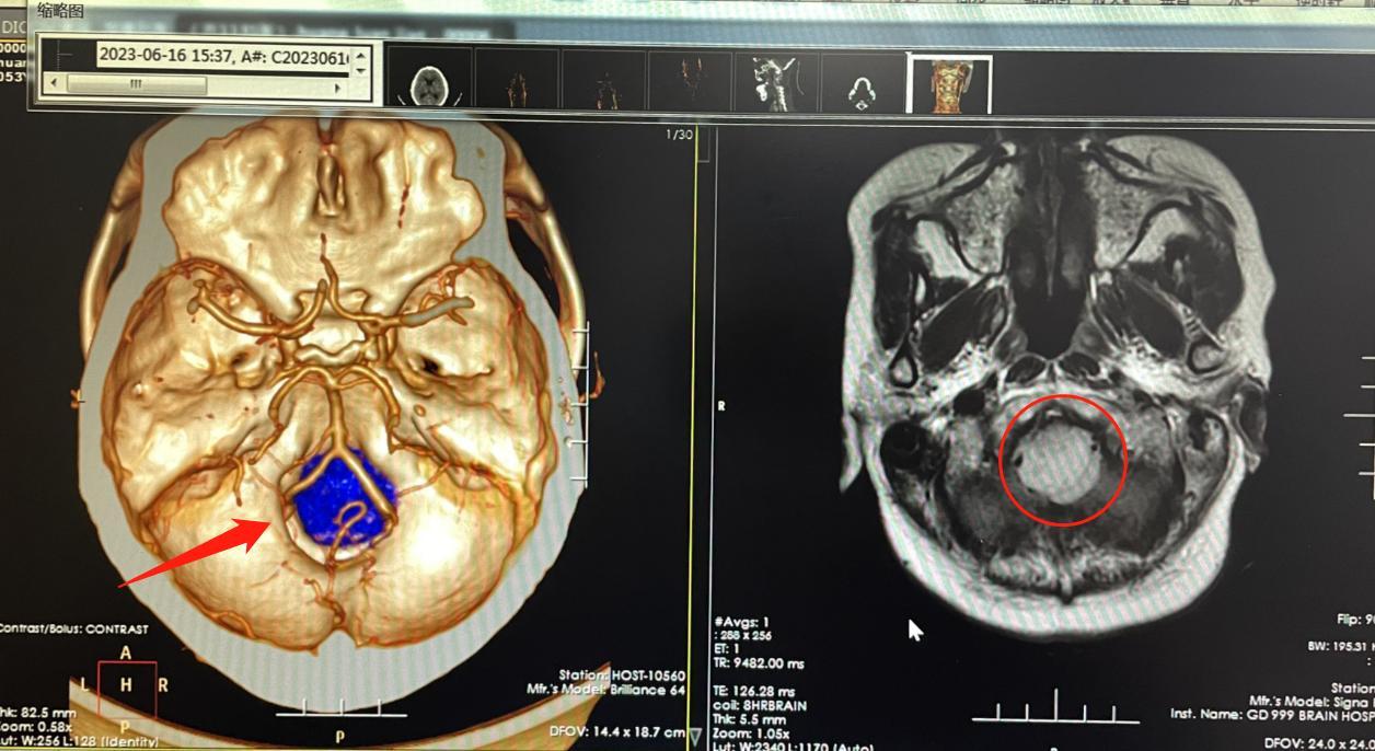 该院神经外九科主任穆林森接诊后,发现蔡阿姨的肿瘤位于斜坡-枕骨大孔区。肿瘤直径约3cm,对功能区已造成挤压,再不及时手术,可能导致瘫痪甚至危及生命。