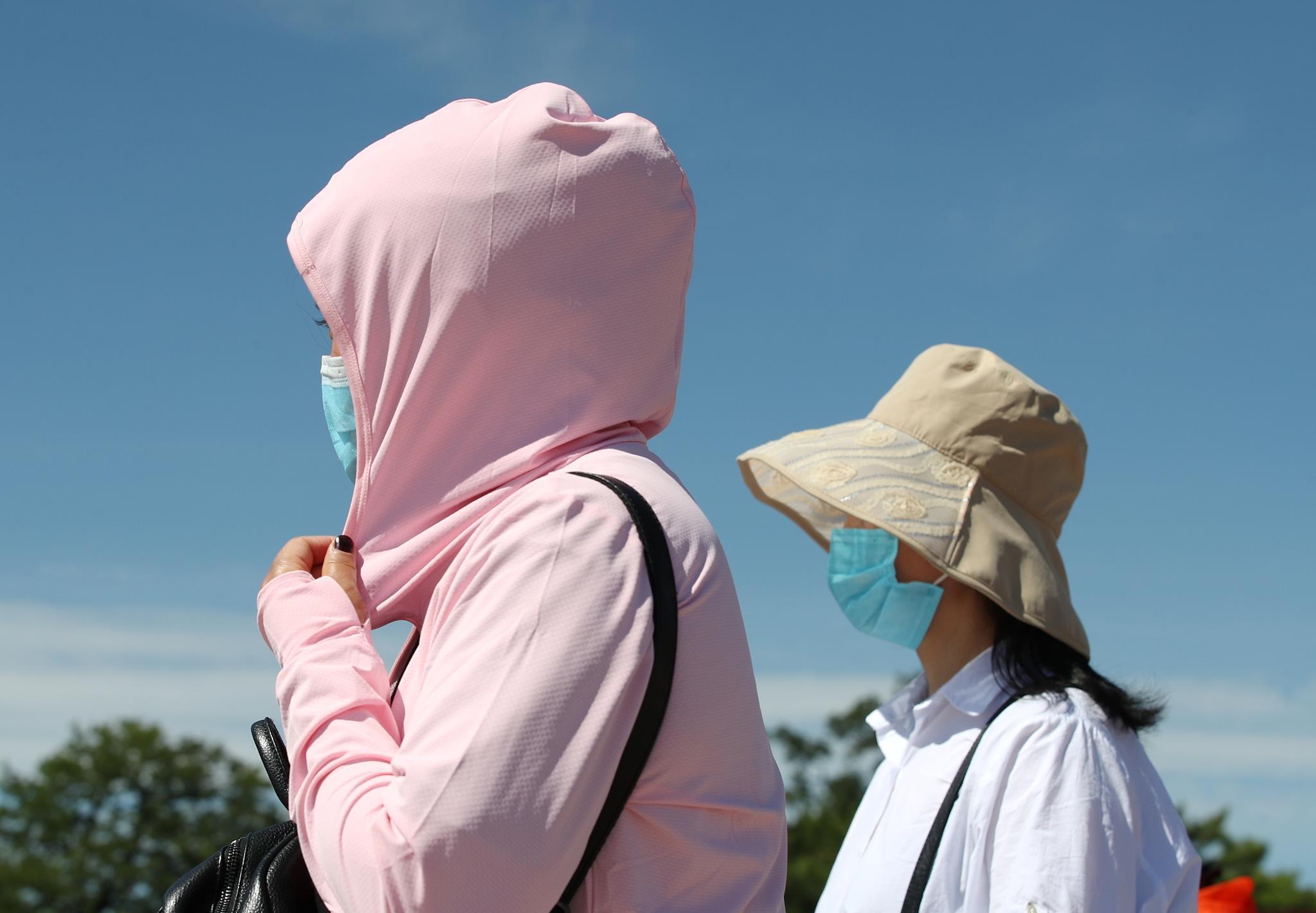 除了防晒服之外,很多人选择打遮阳伞、佩戴冰袖等措施来防晒。