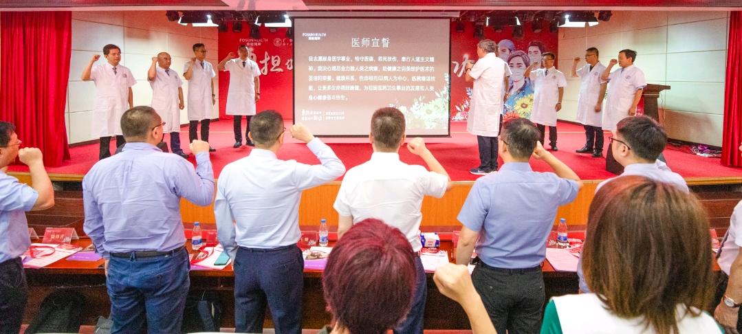 最后,在浓烈的医师节氛围里,医务人员代表共同宣读《中国医师宣言》誓词:“我庄严宣誓,自觉维护医学的尊严和神圣,敬佑生命,平等仁爱,患者至上,真诚守信,精进审慎,廉洁公正,终身学习,努力担当增进人类健康的崇高职责。以上誓言,谨记于心,见于行动。”铿锵有力的宣誓声在现场回响,展现了医师队伍奋进向上的精神风貌。
