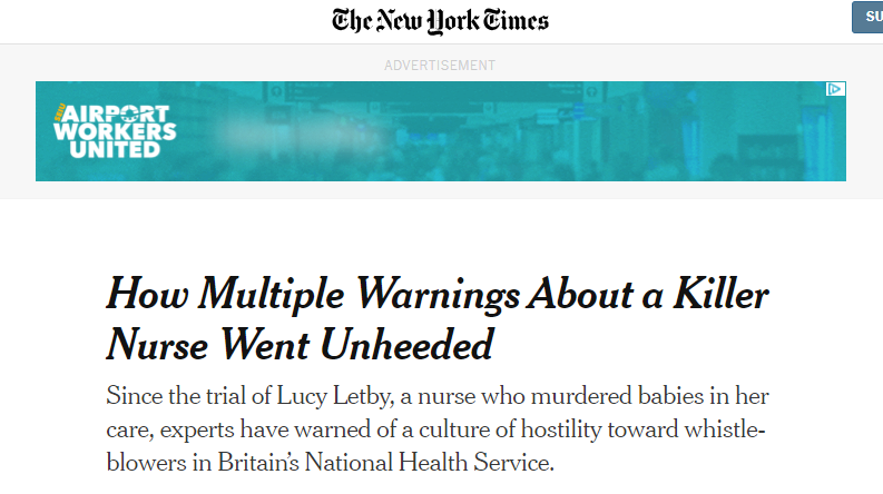 自审判以来,切斯特伯爵夫人医院的医生们纷纷站出来举报医院高层。这些医生们至少5次提醒管理层“莱比与婴儿死亡之间的联系”,但一直被医院“搪塞”。法庭上的证据也显示,该医院新生儿科一直存在人员短缺和环境混乱问题。“如果及时采取措施,管制好医疗设备,这本是可以避免的悲剧。”