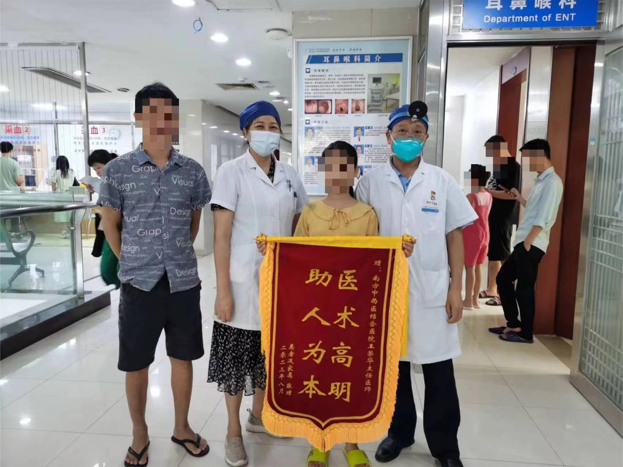 近日,南方医科大学中西医结合医院(以下简称:南医中西医)耳鼻喉科副主任王荣华收到一面由11岁小女孩及其家人赠送的锦旗。