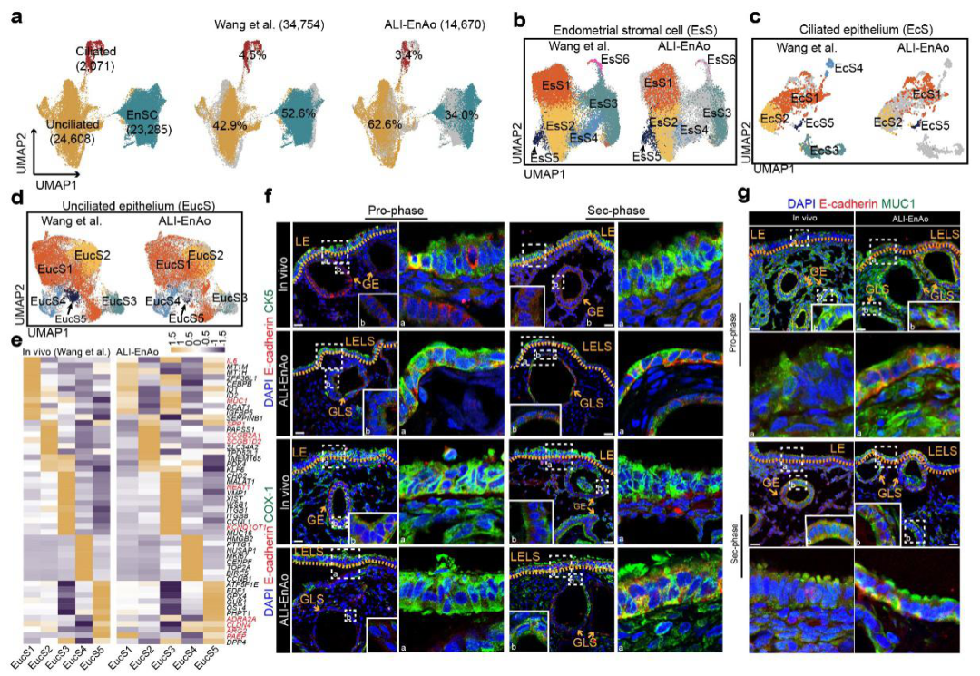 “这种类器官的创新之处,在于将腺上皮和子宫内膜基质细胞结合,并采用改进的细胞外基质和气液界面方法进行培养。”李天晴说,通过与体内内膜组织的一系列比较分析,揭示了子宫内膜类器官能够再现子宫内膜的特征,包括解剖结构、细胞组成、激素诱导的月经周期性变化和基因表达谱。
