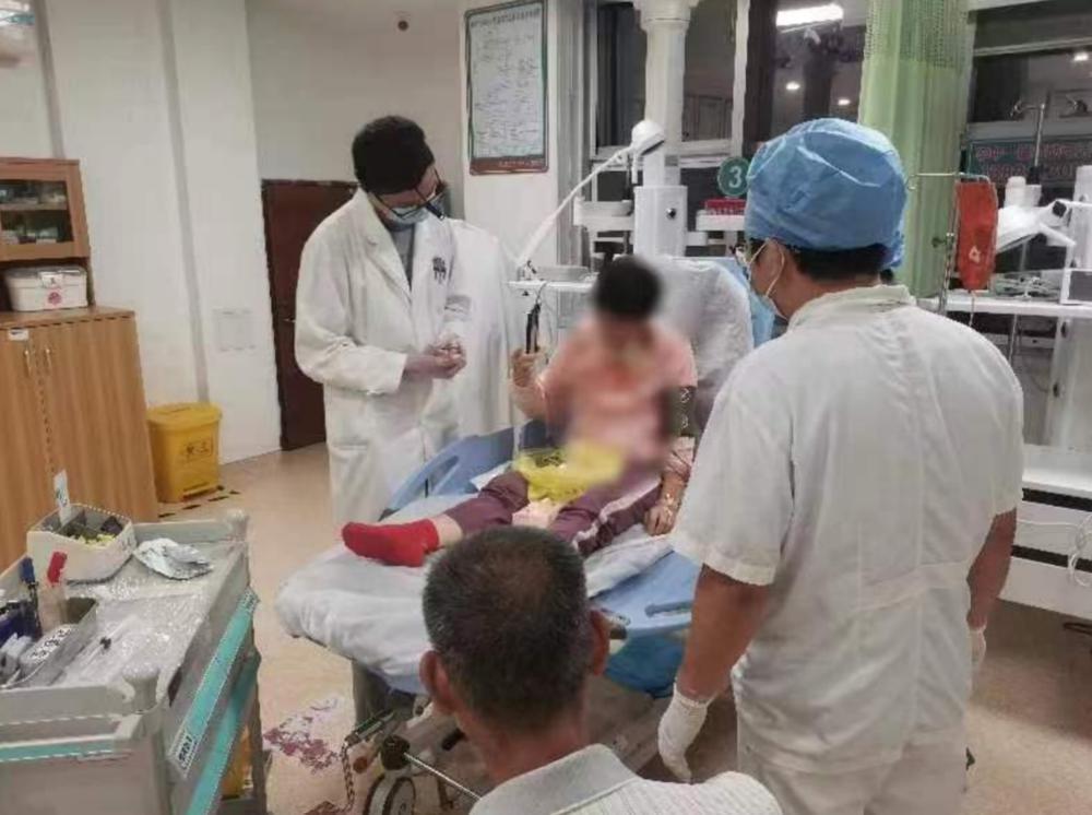这位39+周的孕妇在私家车上疼痛难忍,医护人员迅速推车床迎接。经快速检查,见孕妇宫口开全,已经见到胎头。赶紧启动绿色通道!急救人员一边与产房对接做好接生准备,一边快速转运。在产科医生、助产士、急诊科医护紧急救治下,不到5分钟,孕妇顺利分娩。健康女宝宝的到来,让这位二孩妈激动地流下眼泪。在风雨中,急诊与产房救治强强联手、无缝衔接,为母婴安全保驾护航。