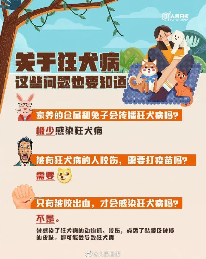每年9月28日是世界狂犬病日。犬是我国狂犬病的主要传染源,约占95%,但不是只有猫狗才会传染狂犬病。据估计,每年狂犬病会导致全球5.9万人死亡,相当于每9分钟世界上就有1人死于狂犬病。