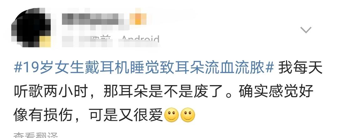 对很多人来说,使用耳机已成为生活的一部分,走路、骑车、乘坐公共交通或者休闲娱乐时,会戴耳机听音乐、打电话、追剧。日前,一个和耳机相关的话题登上微博热搜。一位19岁女生每天戴蓝牙耳机近十小时,上周又戴耳机睡觉,导致耳朵流血流脓,被确诊为外耳道炎。
