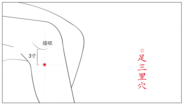摩穴健脾。足三里(位于小腿上,当腿弯曲时,膝关节外侧有一块高出皮肤的小骨头,从这个地方往下四横指处即是),是健脾养胃一大保健穴。每天晚上睡觉前,可按摩此处3~5分钟。