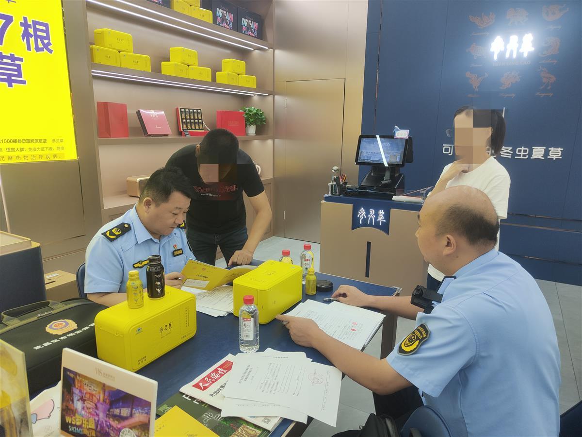 武昌区中南路市场监管所接到举报后,执法人员前往该保健品专柜进行现场检查。执法人员发现该专柜摆放了“参灵草牌原草液 可以喝的冬虫夏草”宣传册,其内容含有“参灵草原液不仅能提高肺癌患者总体生存质量,有效缓解肺癌患者化疗后毒副作用”等相关表述,并引用外交部礼宾司文件。执法人员认为,保健食品广告不得含有表示功效、安全性的断言或保证,以及涉及疾病预防、治疗功能。