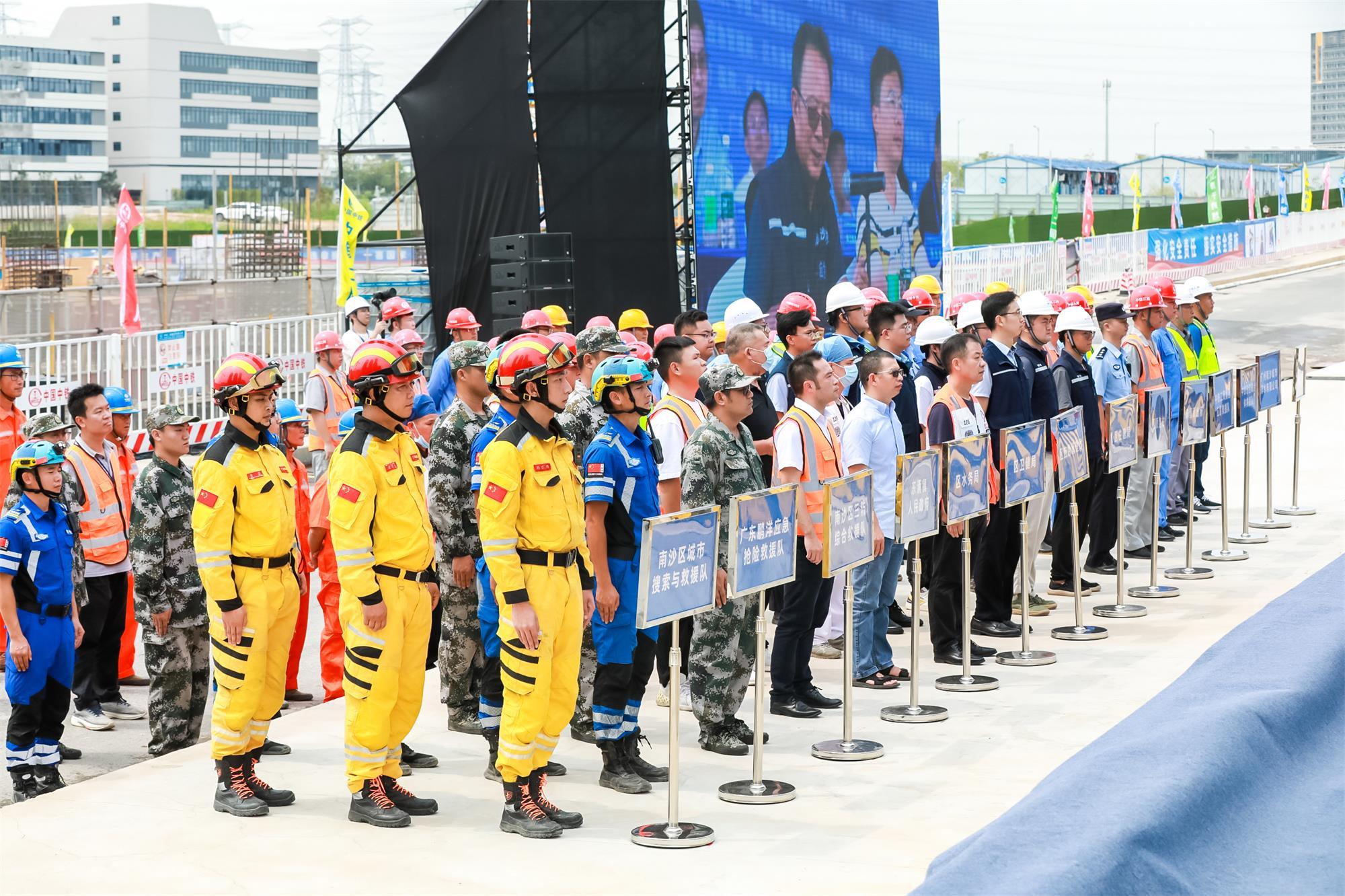 9月22日,广州市南沙区在庆盛枢纽区块开展“2023年南沙区大型在建工程综合应急演练”活动。演练由广州市南沙区人民政府主办,南沙区创建省级安全发展示范试点城市工作领导小组办公室指导,南沙区应急管理局、住房和城乡建设局、卫生健康局承办,南沙区各有关单位及中铁总包联合体救援队共同参演。