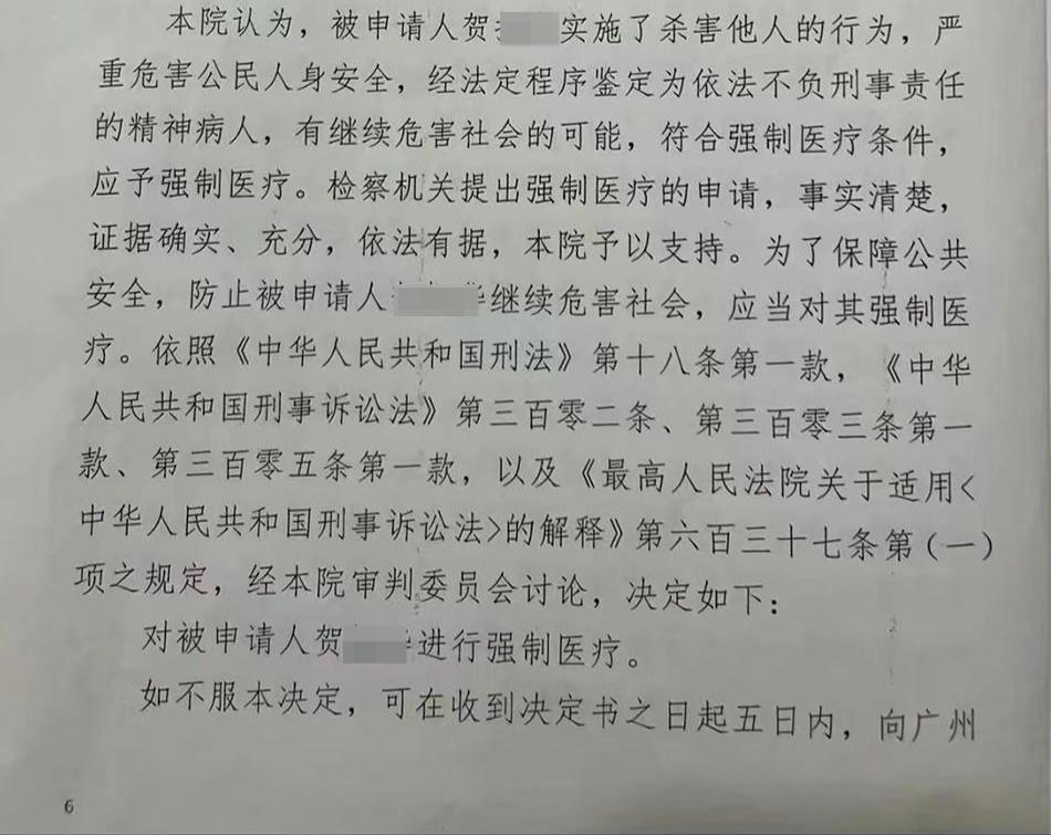 据悉,在法院作出强制医疗决定之前,2023年7月26日,衡阳铁路公安处根据司法鉴定,对贺某予以释放,并采取临时的保护性约束措施——将其约束在衡阳的精神病医院。