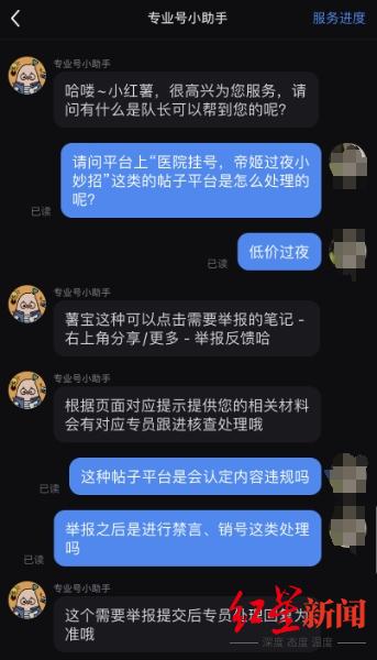10月10日,记者联系上涉事平台的客服(专业号小助手)。对方表示,该情况可以点击平台上的举报选项,并根据页面对应提示提供举报者的相关材料,会有对应专员跟进核查处理,“平台会基于其独立认定的事实,采取如下的一项或者多项措施,例如:限制展示范围,账号禁言,账号封禁,依法追究法律责任等等。”