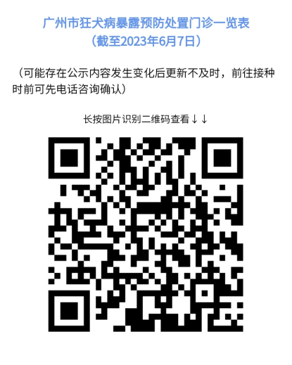 目前广州每个区都有狂犬病暴露预防处理门诊,老广们可能比较熟悉的医院有广州医科大学附属市八医院、中山大学附属第三医院,大家可以在疾控网站找到相关资料。